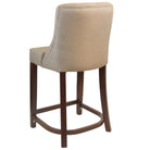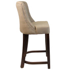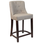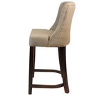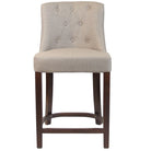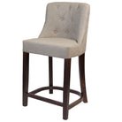 Leona Mid-Height Bar Stool is a fully upholstered classic style chair with a sturdy beech wood frame in a walnut finish. Upholstered in a grey woven contract-grade fabric with a deep button back detailing.