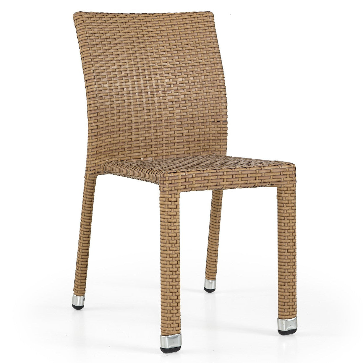 Woven Rattan Outdoor Dining Chair with a mocca brown or light brown coloured rattan effect weave complimented by an Aluminium frame.