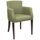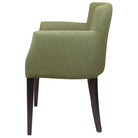Sit back and relax in this great looking carver chair with a solid walnut frame and upholstered in a woven fabric in olive (Highland Panaz). It's a versatile chair, suiting most environments.