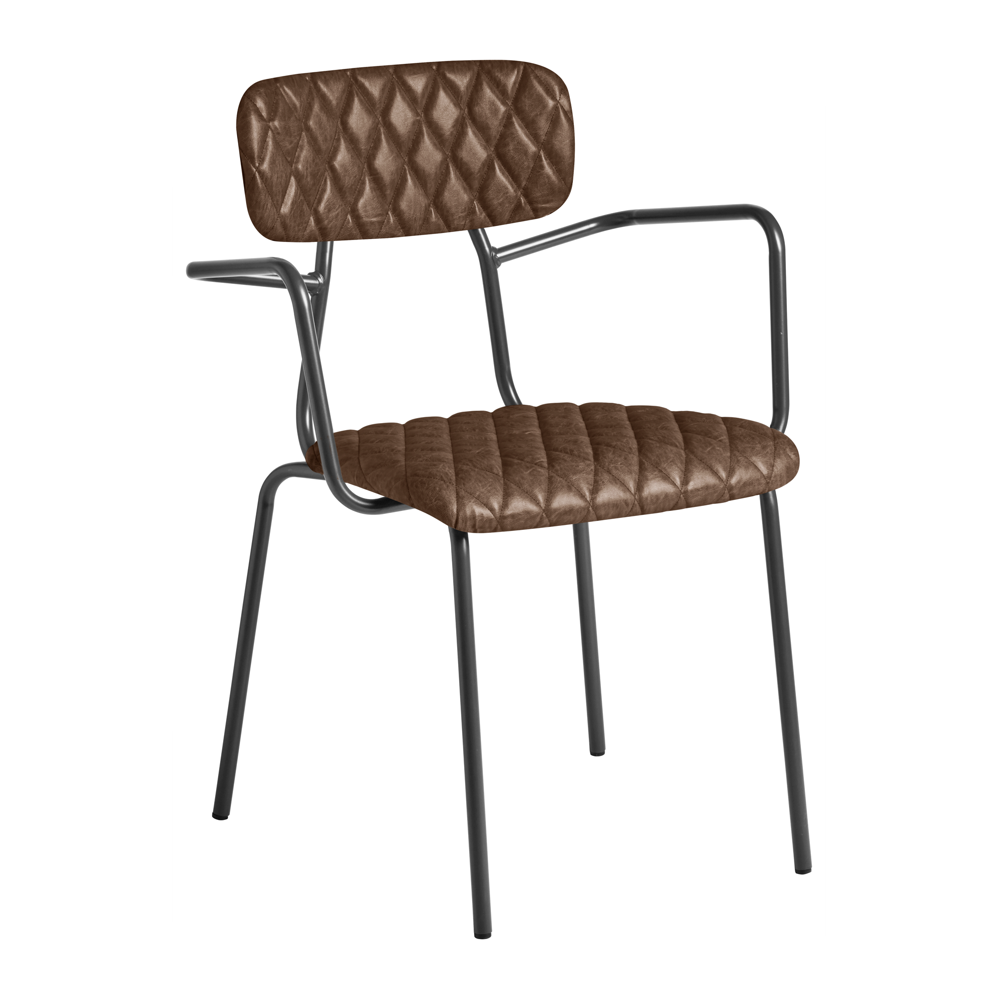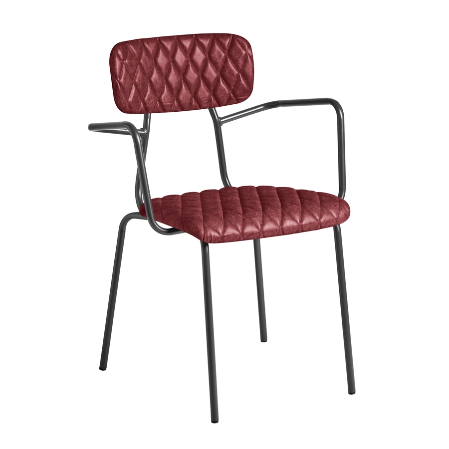 The Kara Arm Chair is available in five colours and is beautifully upholstered in the finest faux leather and finished with diamond stitching. The clear powder coated raw steel frame gives it a chic industrial style whilst the leather gives a slightly vintage look which is popular with restaurants, bars, hotels and indoor venues.