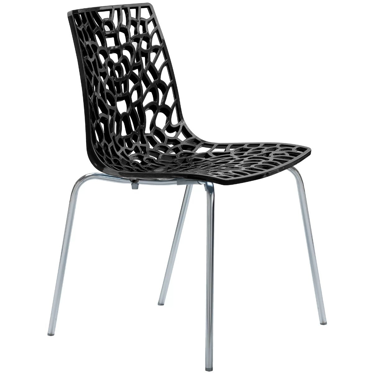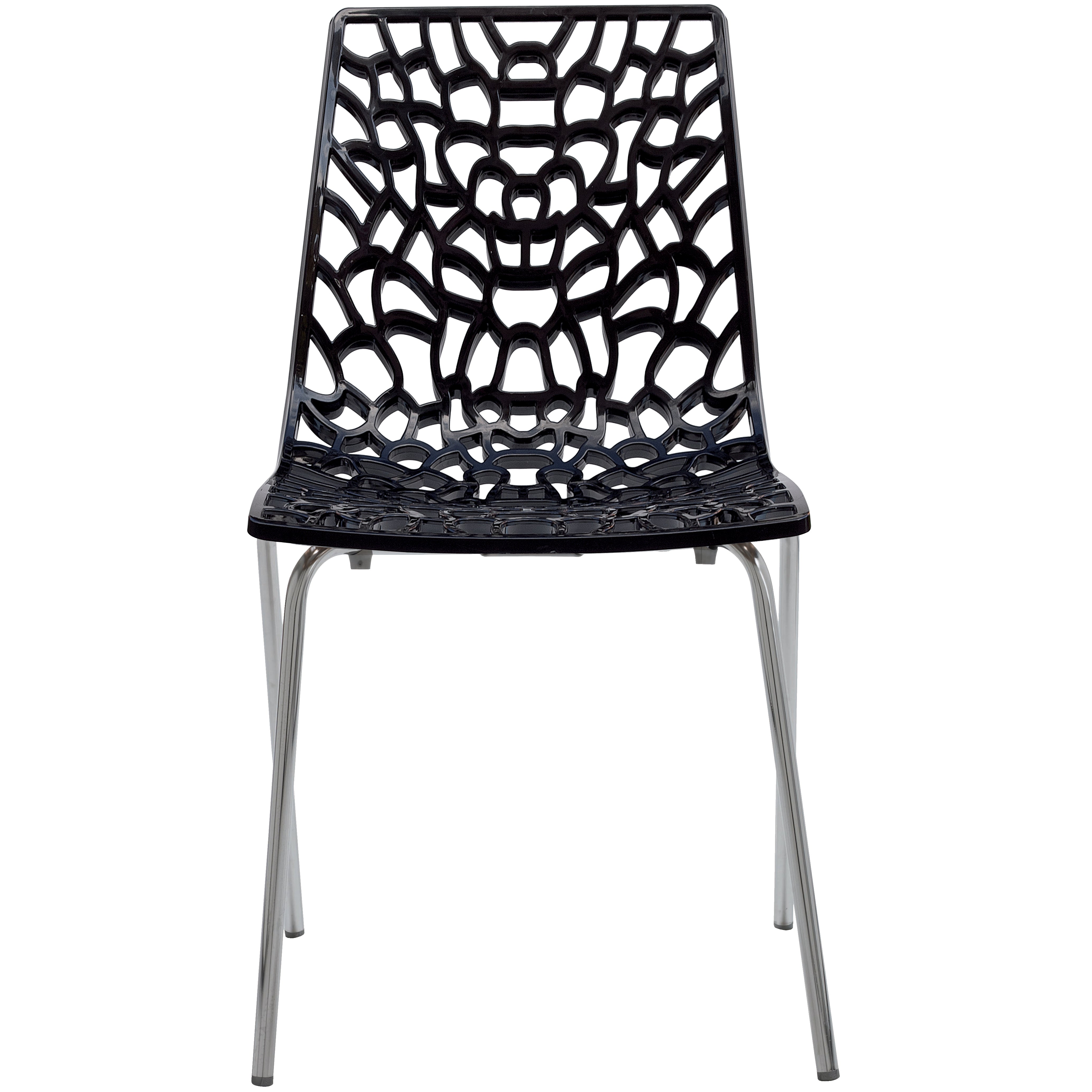 The Groove has a spider-web effect design and the seat is made from Highmopp, a very durable glossy polypropylene, while the legs are made from chrome-plated steel.