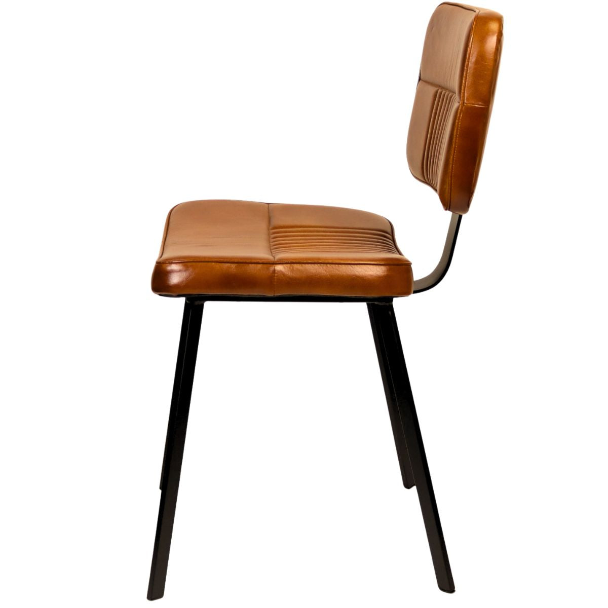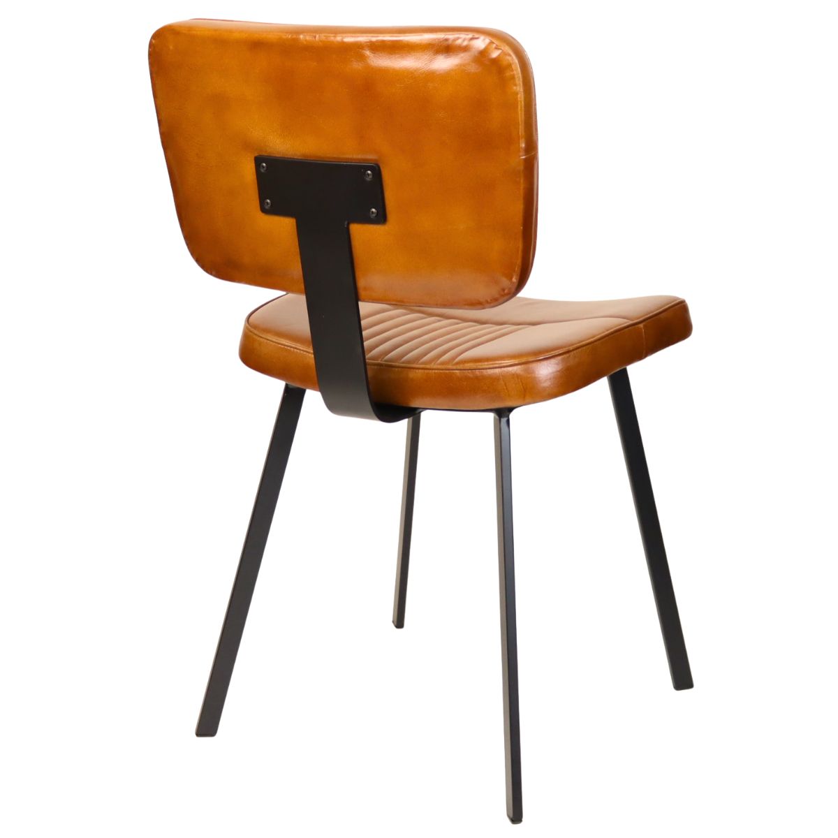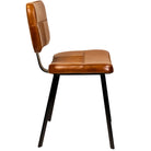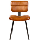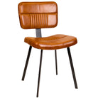 The Foundry industrial upholstered metal frame dining chair with curved seat pad and backrest, finished with high-quality leather in tan with fluted upholstery detail.