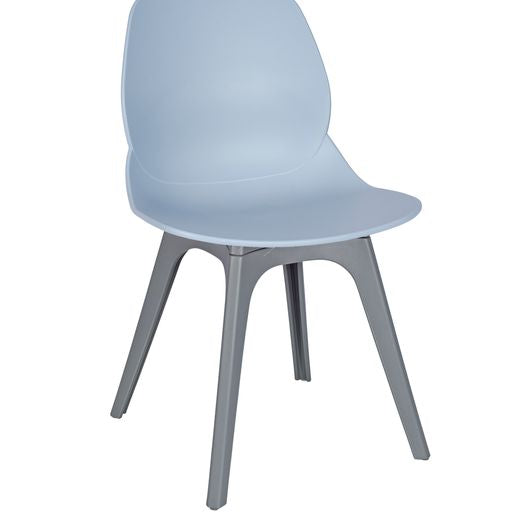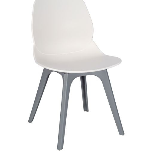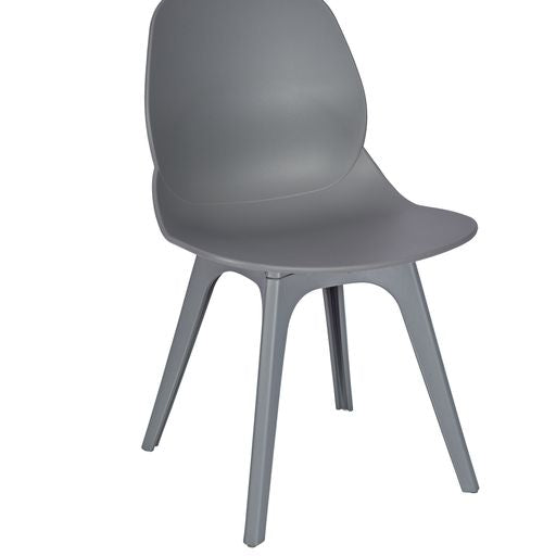 The polypropylene Space dining chair is a stylish and contemporary indoor solution, with a grey finish on a arched base and a vibrant coloured seat.