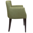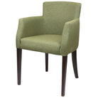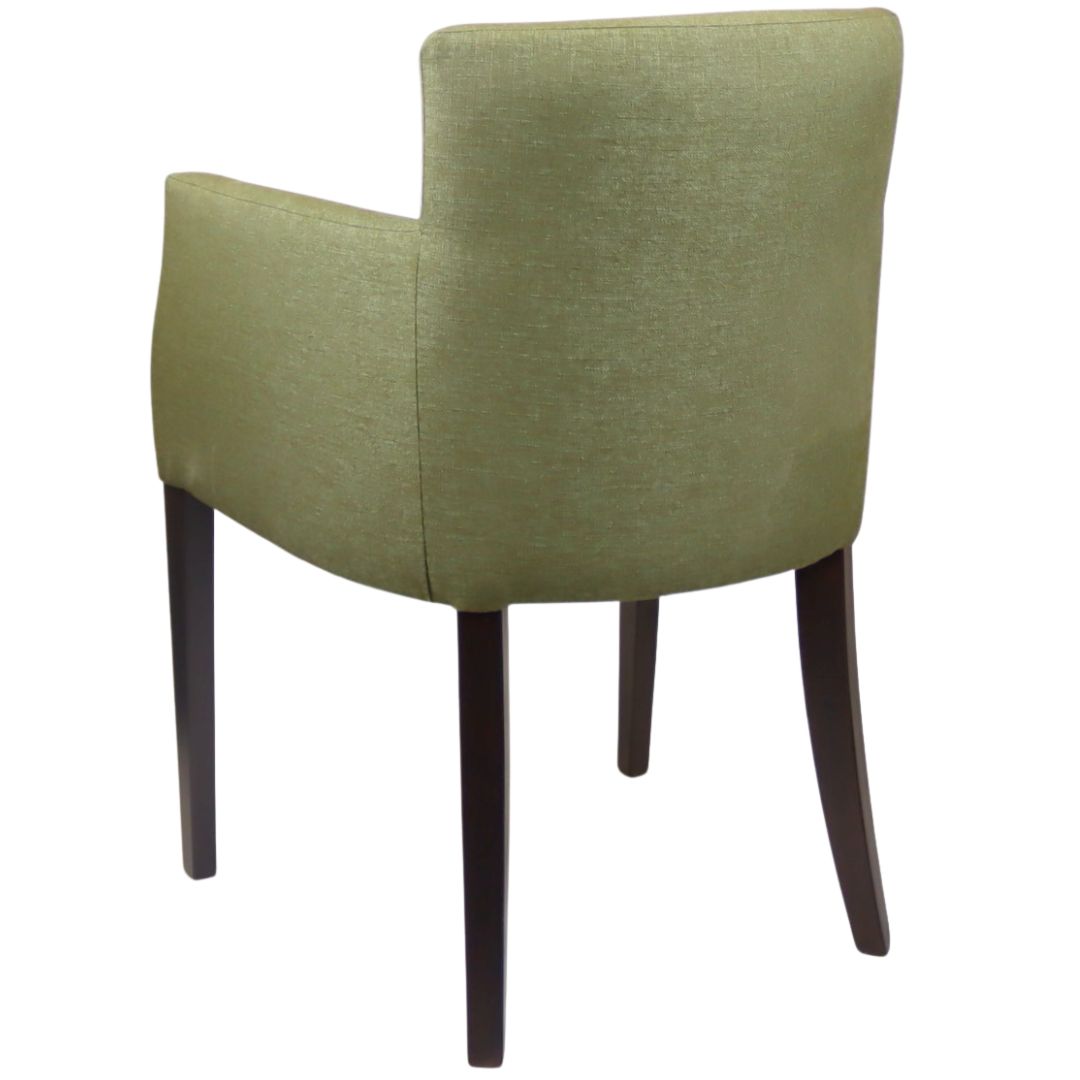 Sit back and relax in this great looking carver chair with a solid walnut frame and upholstered in a woven fabric in olive (Highland Panaz). It's a versatile chair, suiting most environments.