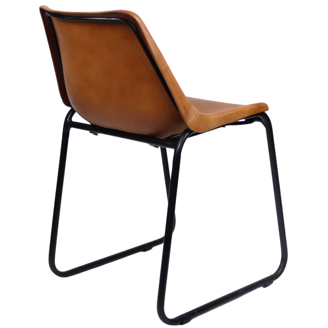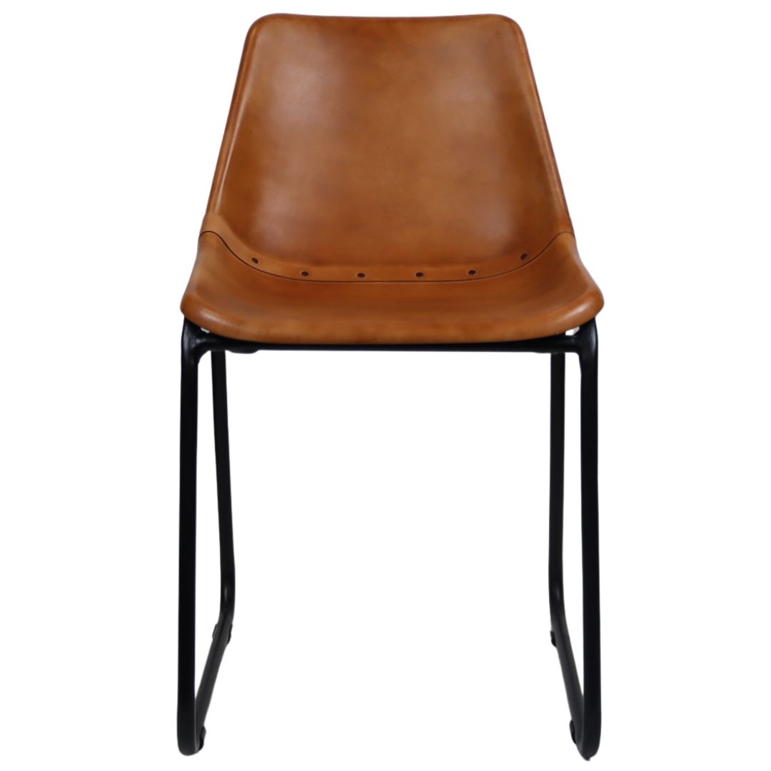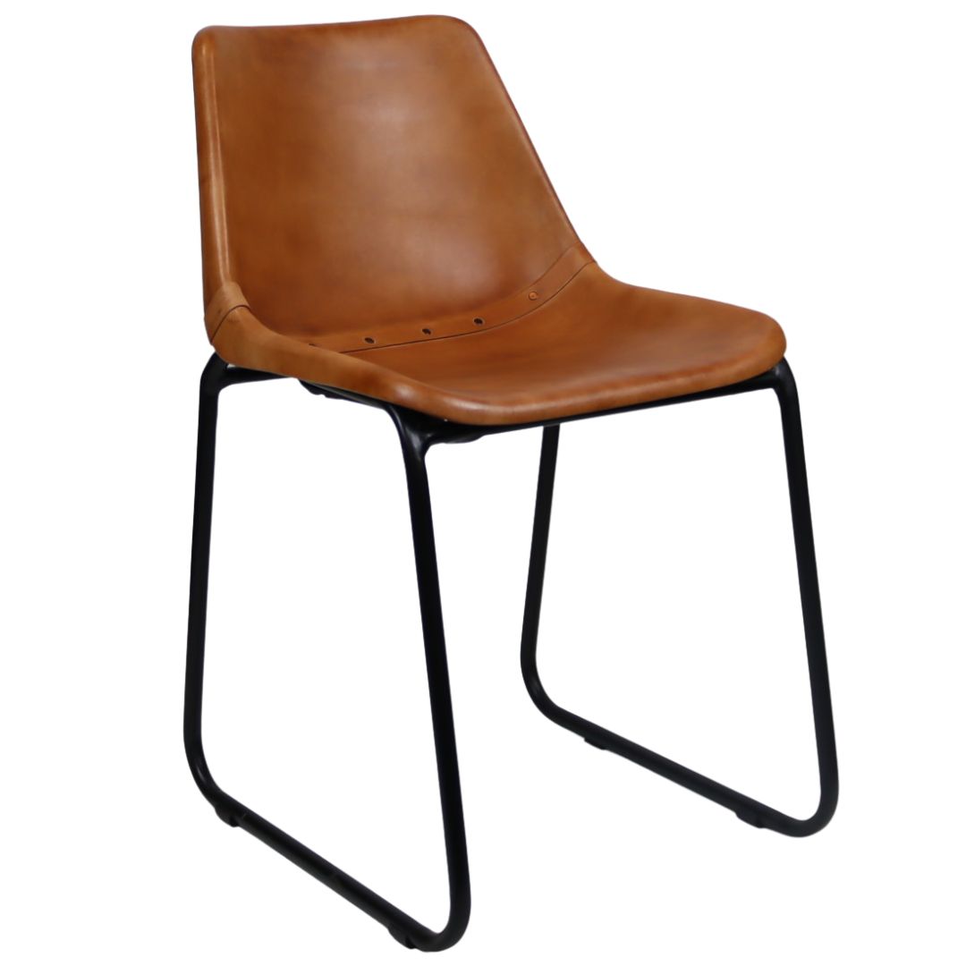 The industrial Patriot Tan Skid Frame Dining Chair has a classic-shaped seat and is upholstered in tan leather. It is complemented by its industrial black steel legs with. This retro chair is the perfect partner for any contemporary or industrial design space.