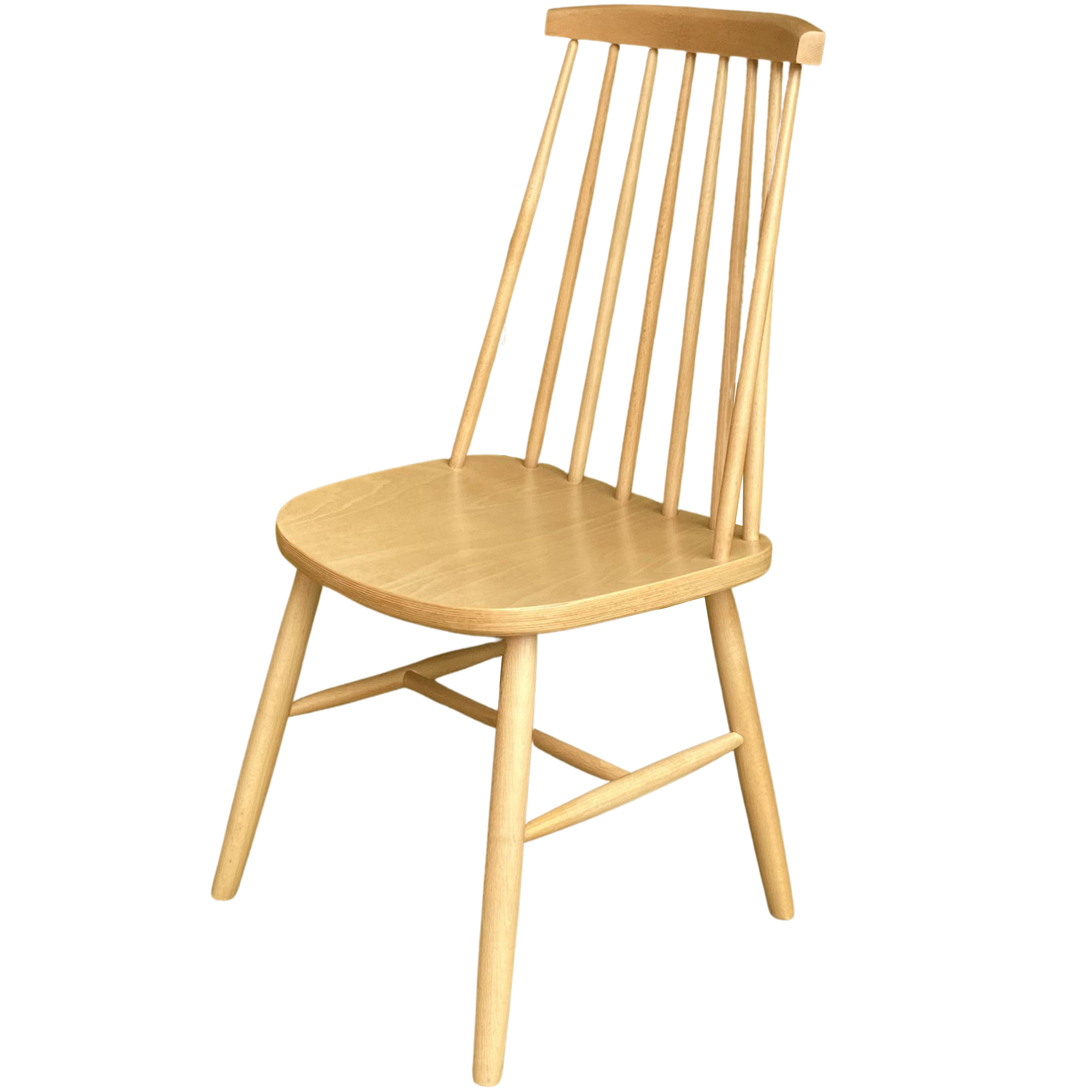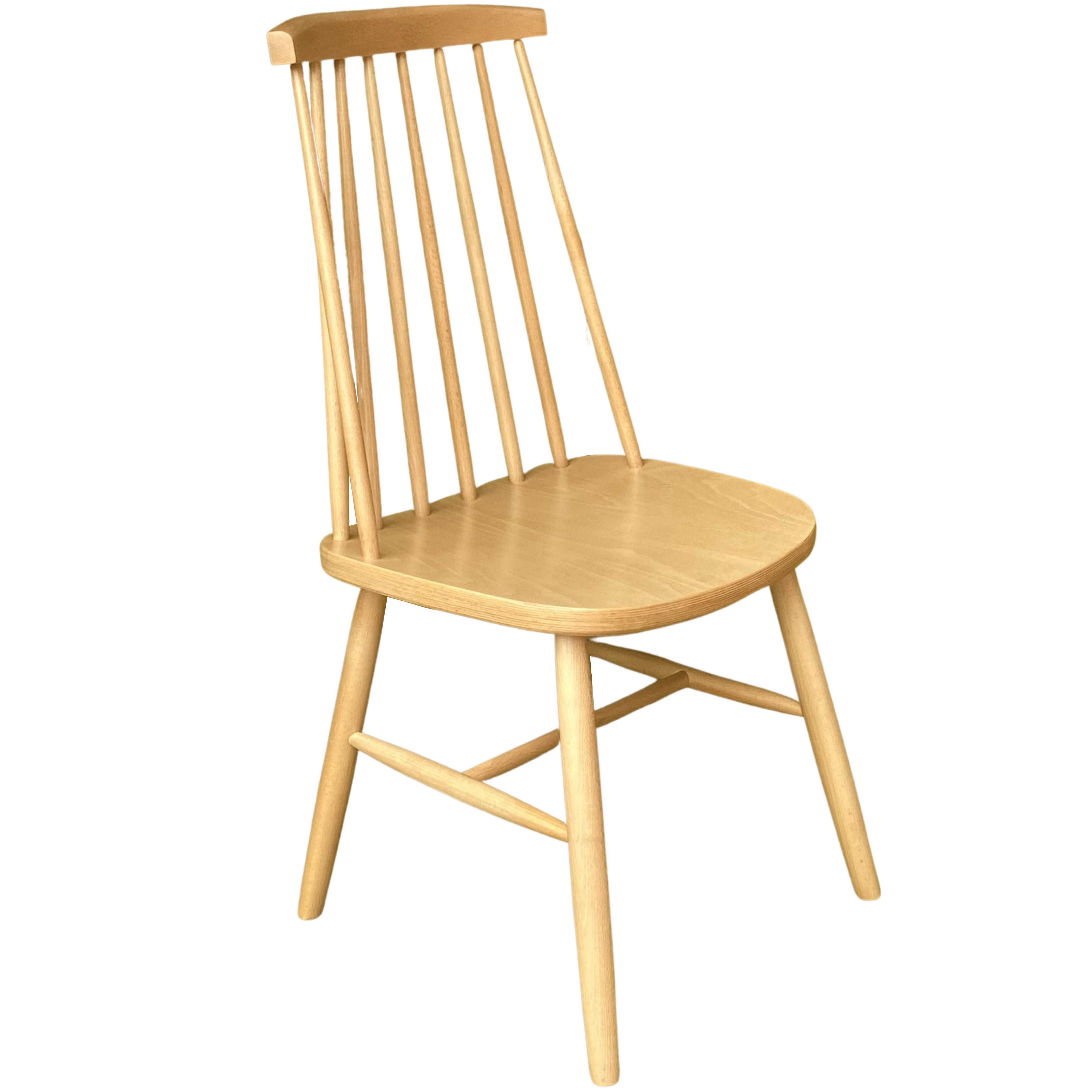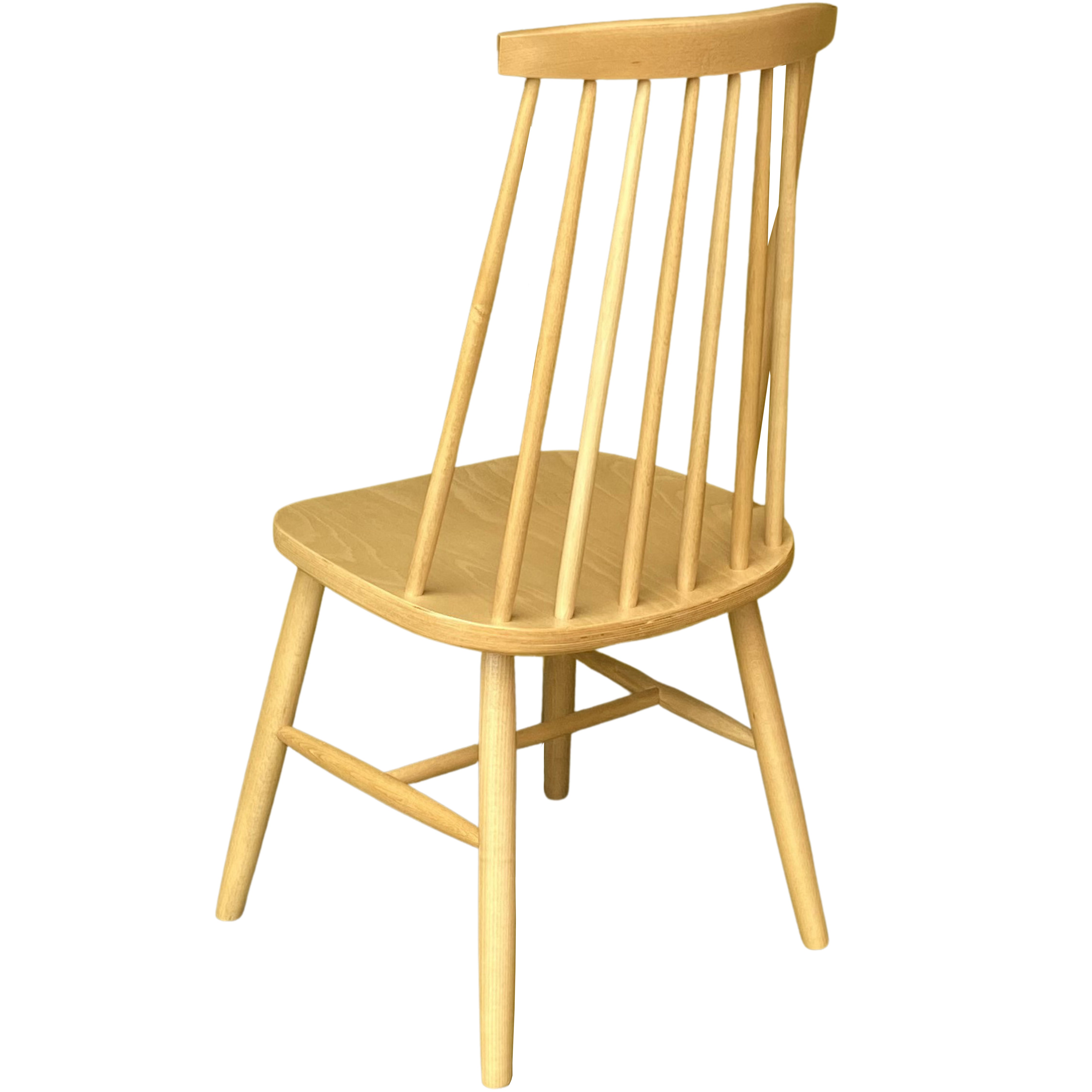 A high-back farmhouse-style beech wooden chair, available with a clear lacquer finish or black finish. Perfect for cafes and restaurants.
