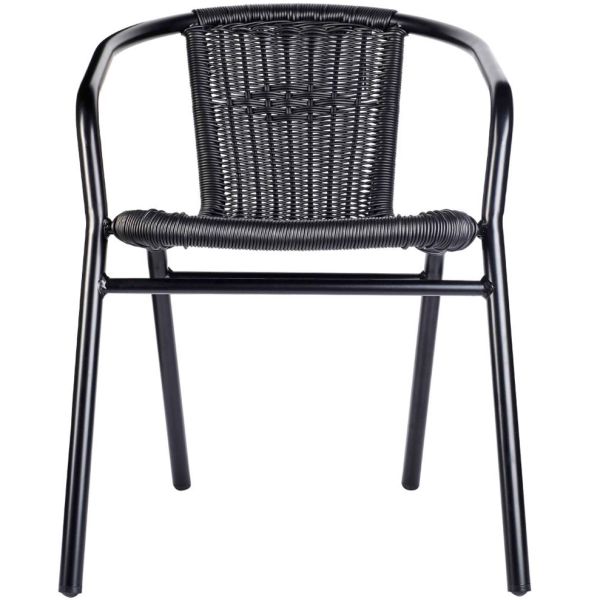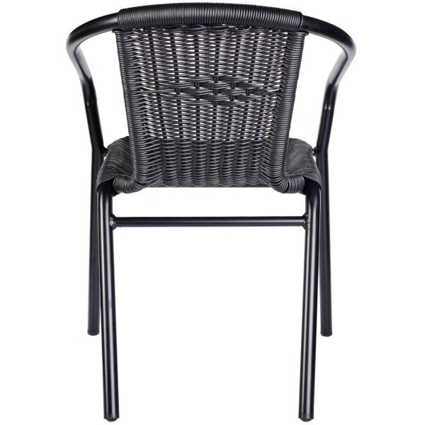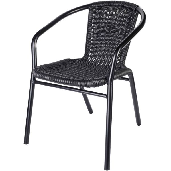 The Wicker Arm Chair is a robust, easily stackable armchair which is perfectly suited to outdoor usage. The chairs frame made of EPC aluminium with a black wicker style seat and backrest which helps withstand weathering elements.