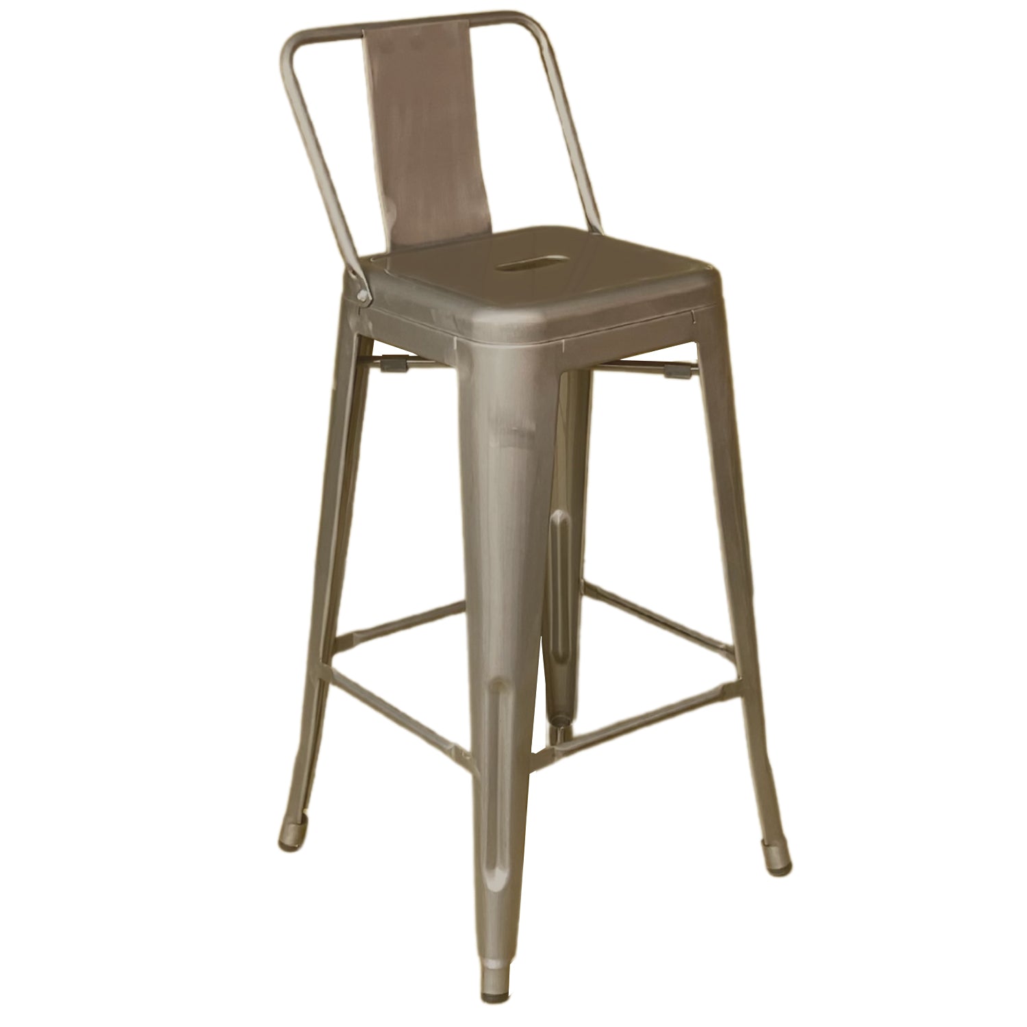 The industrial steel-framed French Bistro Mid-Height Bar Stool with back is a sophisticated choice for trendy interiors. Finished in a clear lacquer.