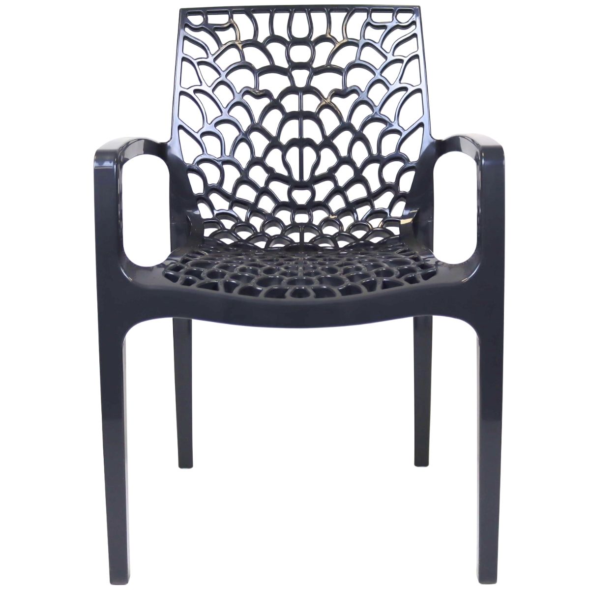 Contemporary spiderweb effect polypropylene outdoor arm chair. Ideal for a number of environments including cafes, bars, pubs, restaurants, hotels and student accommodation.