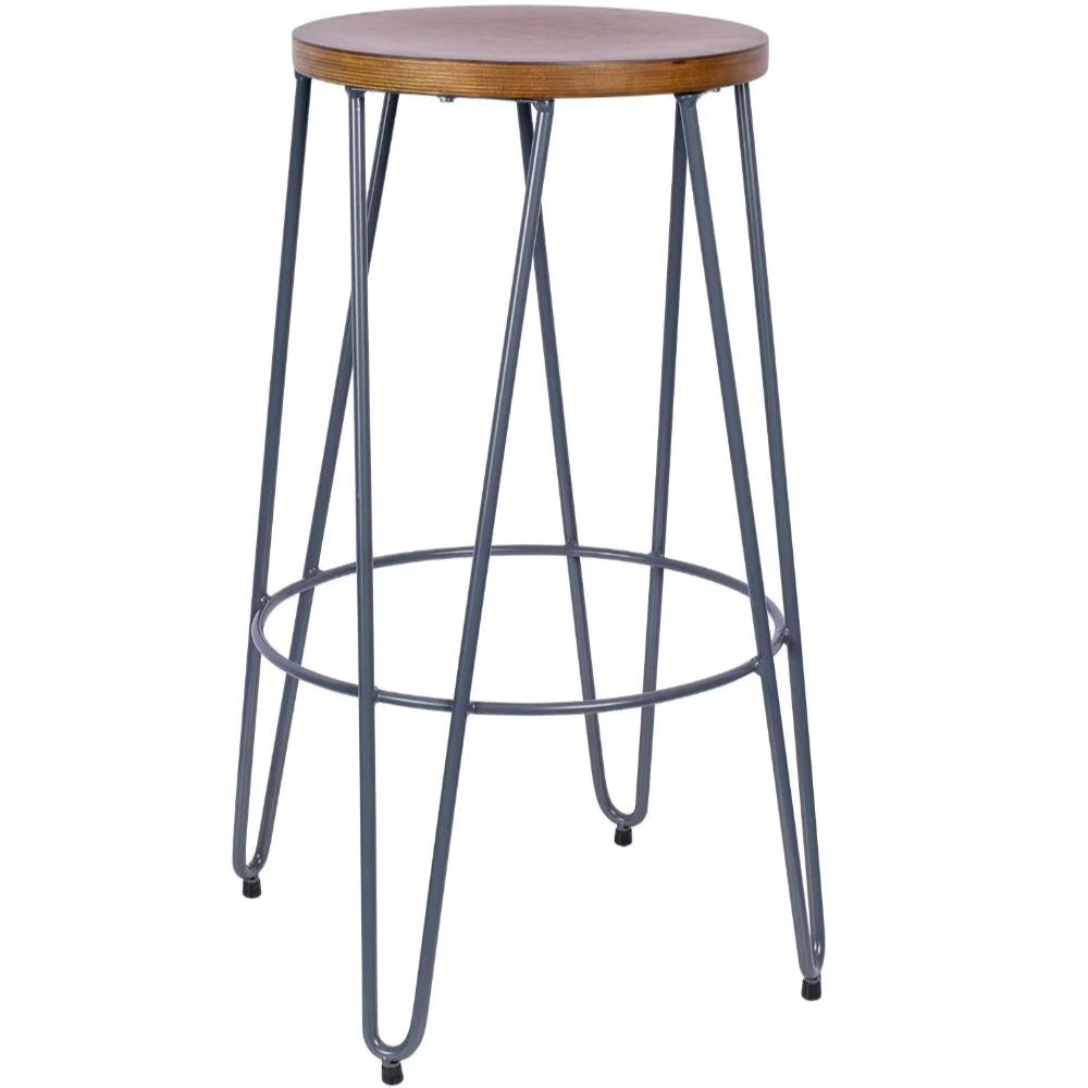The Trieste Bar Stool has a veneered seat pad, with grey metal legs